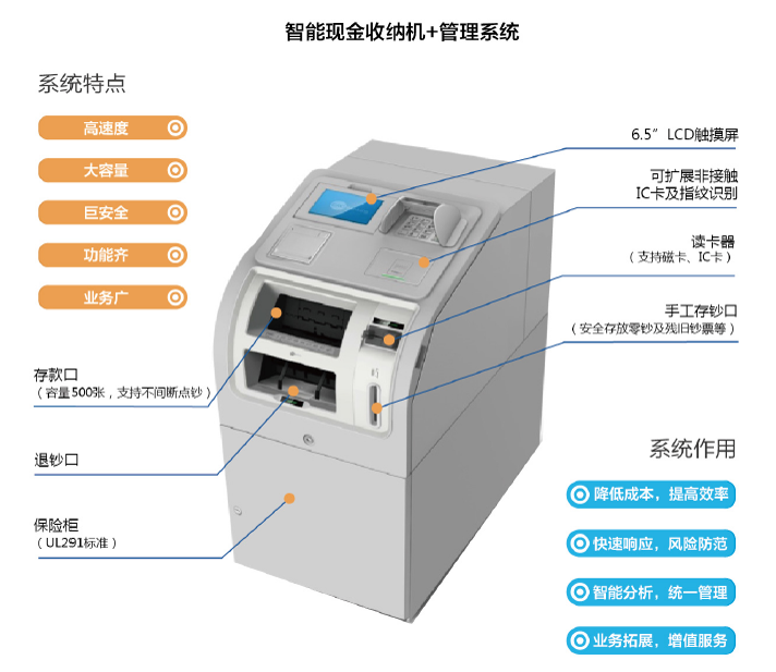 由銀行根據(jù)企業(yè)現(xiàn)金營(yíng)業(yè)金額,在企業(yè)收銀室或財(cái)務(wù)室,布設(shè){}“高速現(xiàn)金收納機(jī)”,并建立集中的現(xiàn)金收納管理系統(tǒng),幫助企業(yè)實(shí)現(xiàn)快速安全的營(yíng)業(yè)款繳納,并通過(guò)系統(tǒng)提供及時(shí)的入賬服務(wù)、遠(yuǎn)程的監(jiān)管服務(wù)等,在為企業(yè)提供安全的高效現(xiàn)金收款服務(wù),同時(shí),銀行可根據(jù)設(shè)備內(nèi)的現(xiàn)金量靈活定制上門收款時(shí)間及頻次,合理利用押款車資源,降低押款成本。